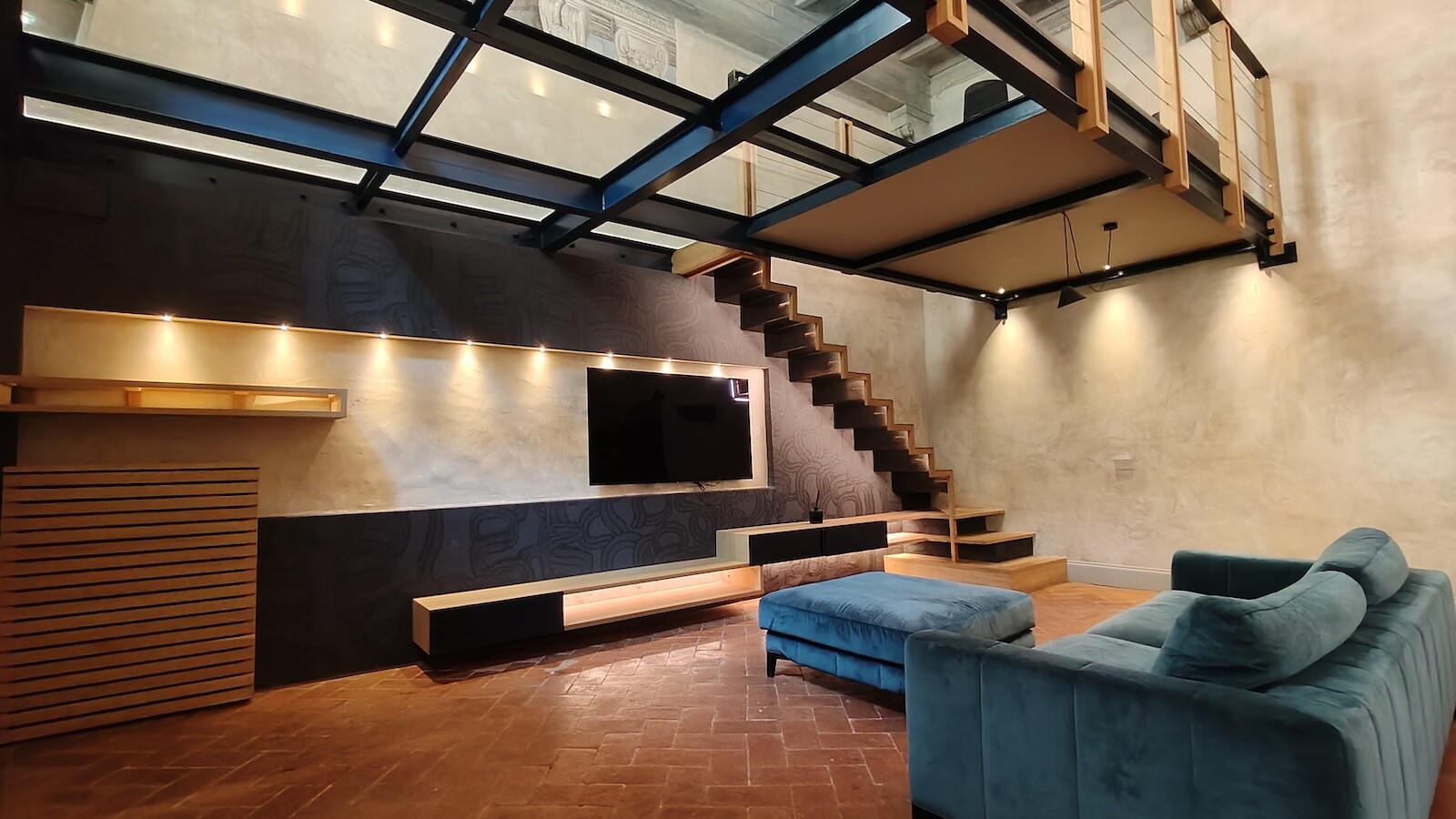 •Soppalco in vetro dal design moderno