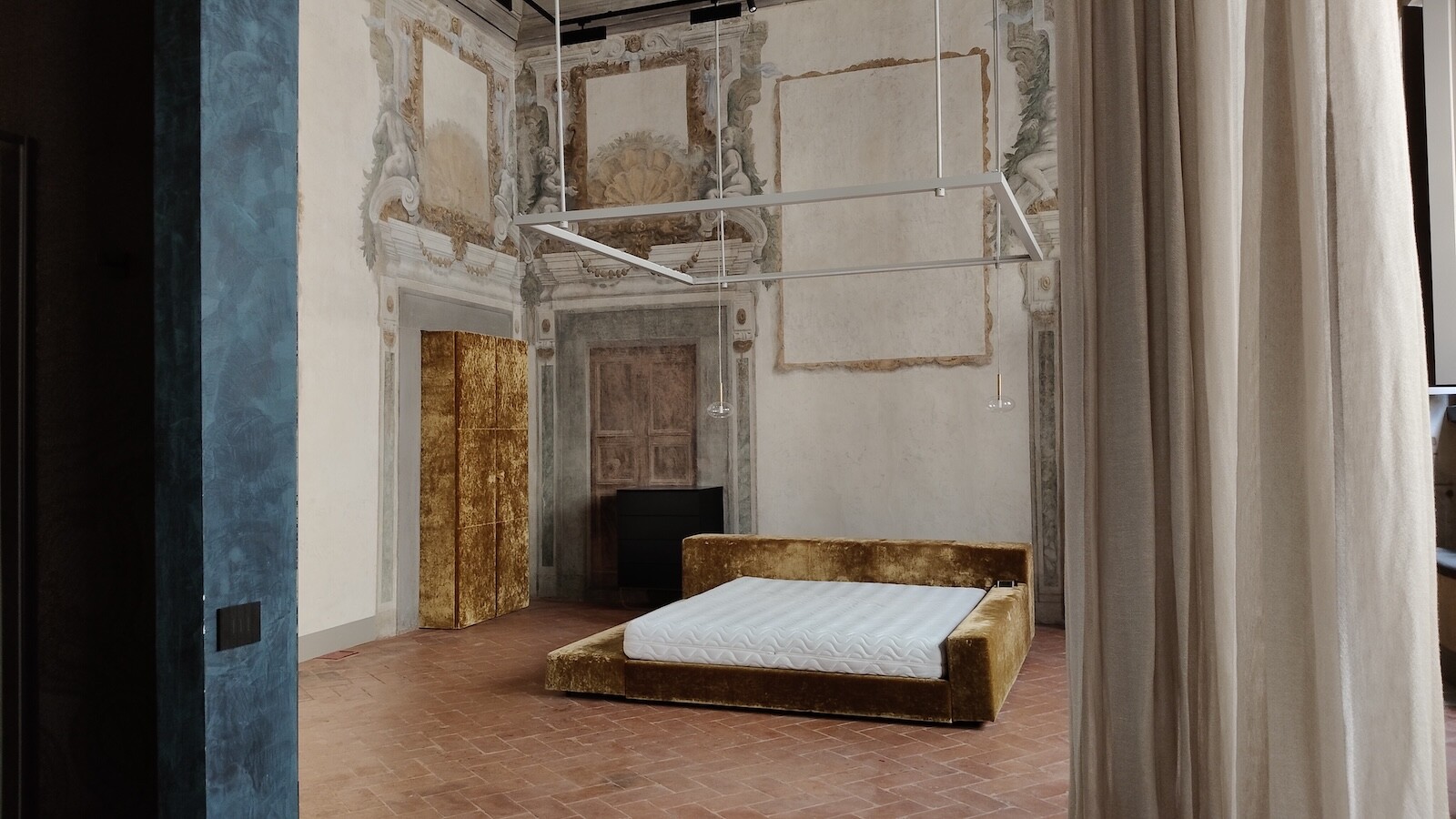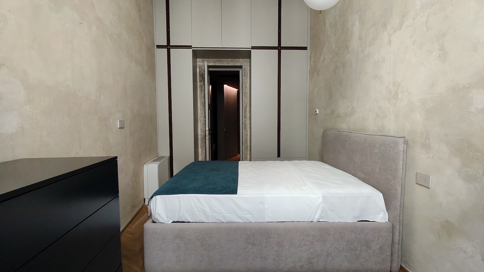 La camera padronale, di circa 70 mq, è un ambiente straordinario, decorato da affreschi originali e dotato di bagno privato. A completare la zona notte, una seconda camera matrimoniale e un ulteriore bagno di servizio.